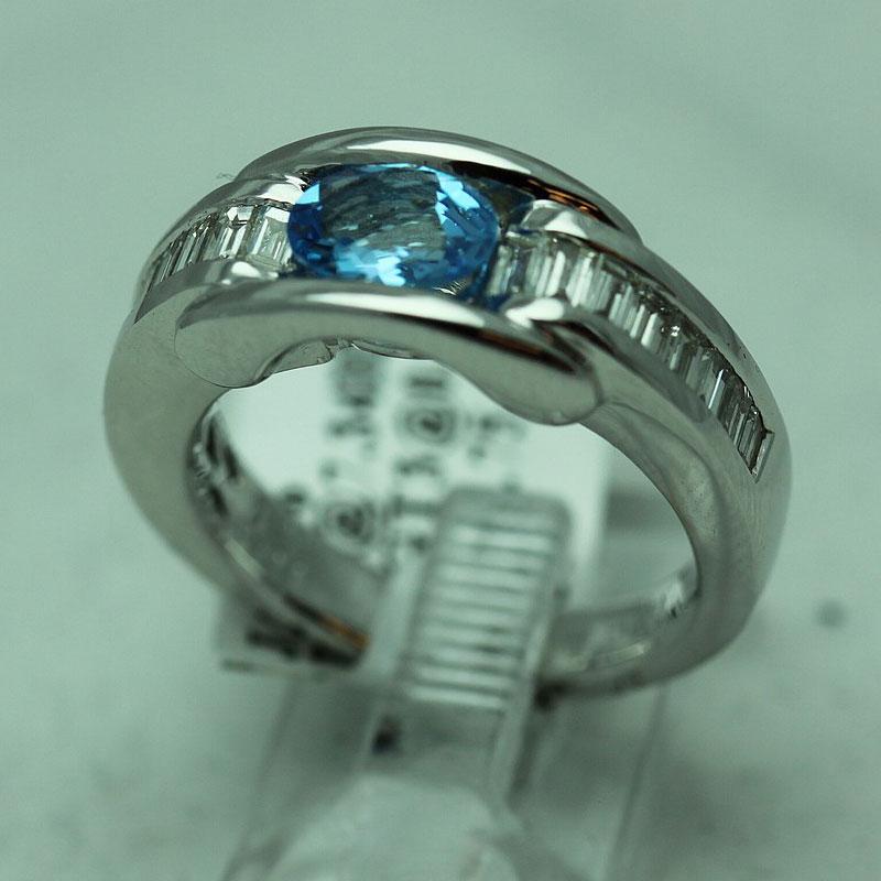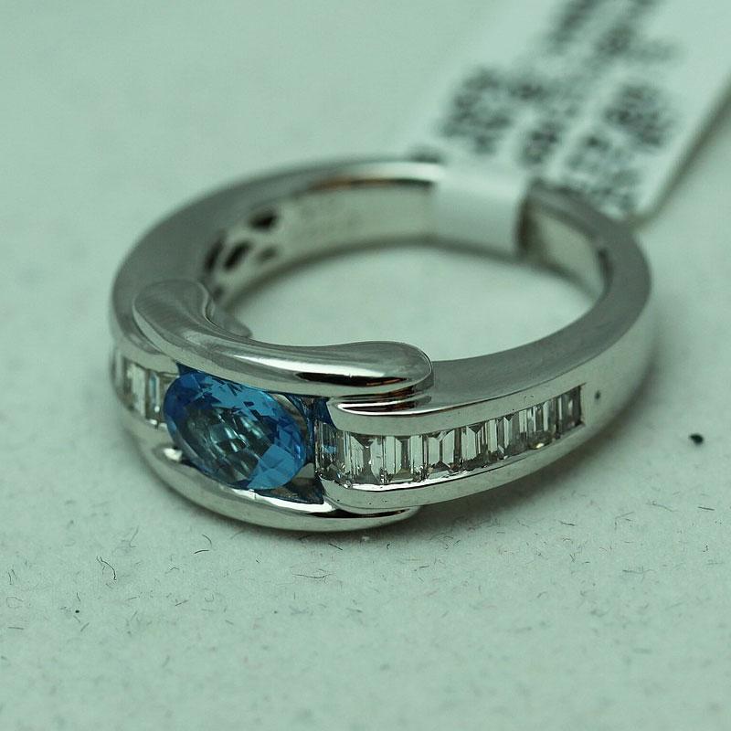 Item details: DIAMOND: 16 Baguette cut White Diamond @ 0.8ct ---GEMSTONE: 1 Topaz @ 0.75ct---METAL: 14K White Gold---Metal weight 7.34 grams---SKU: 339711C-1 --- Consignor: RC Fine Jewelers --- Availability: Ready to Ship