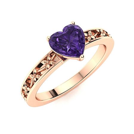 Natural 1.56 CTW Amethyst Solitaire Ring 18K Rose Gold