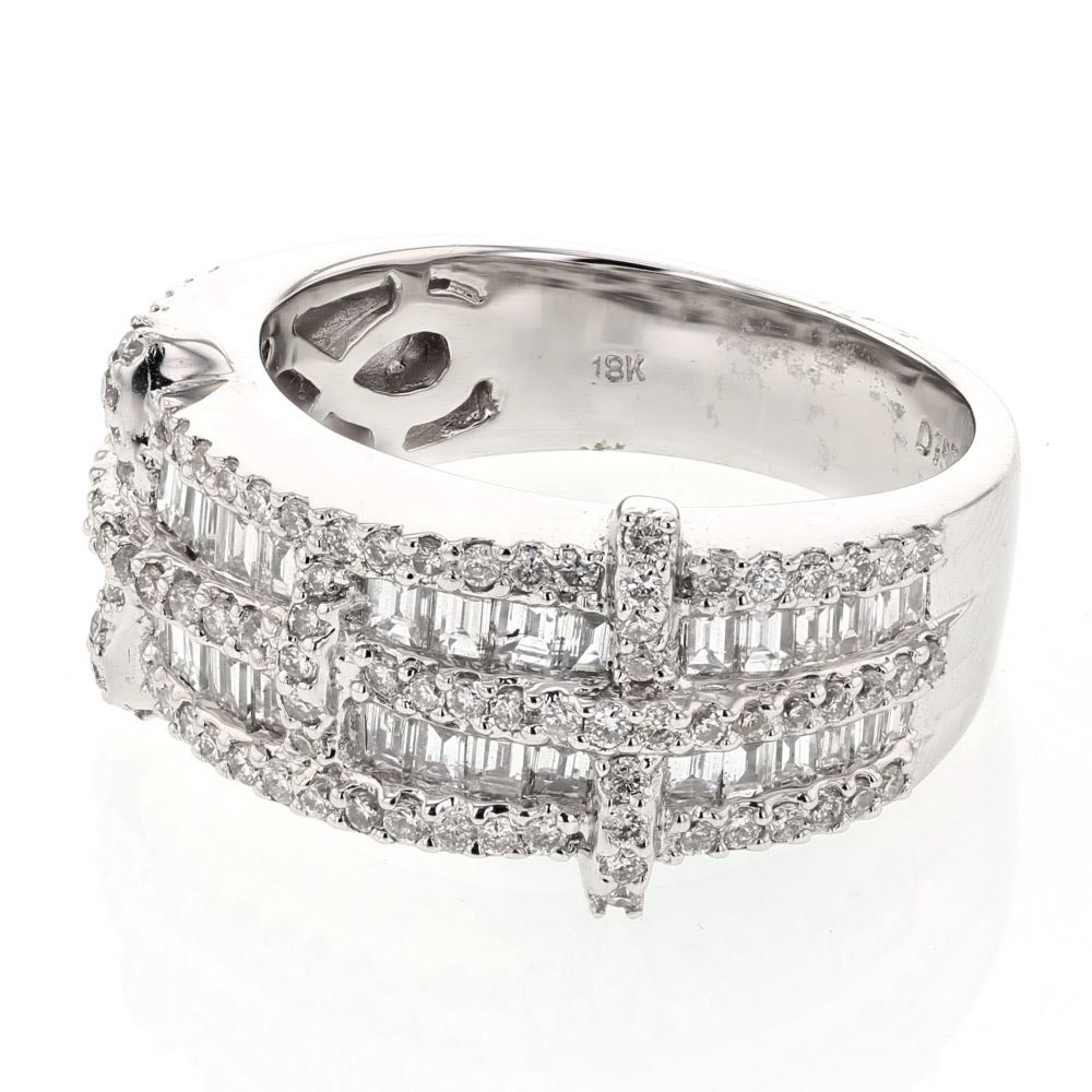REF-213W3H ---- Natural 1.57 CTW Baguette & Diamond Ring 18K White Gold