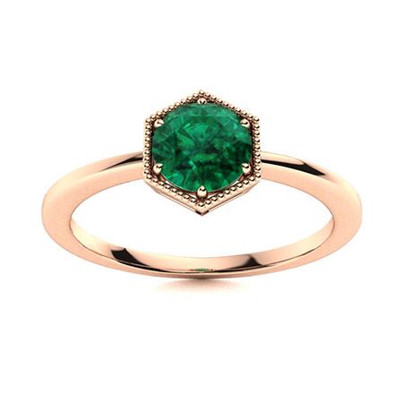 Natural 1.57 CTW Emerald Solitaire Ring 18K Rose Gold