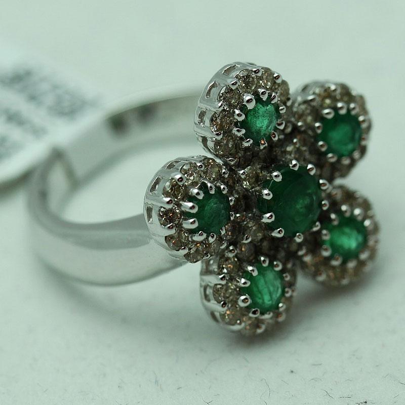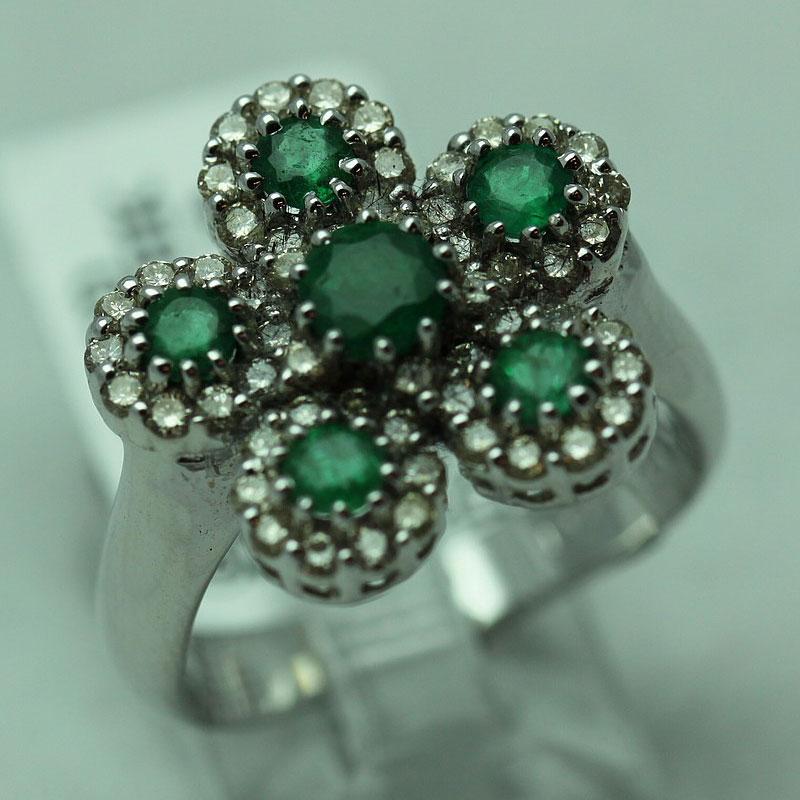 Item details: DIAMOND: 55 Round cut White Diamond @ 0.79ct ---GEMSTONE: 6 Emerald @ 0.79ct---METAL: 14K White Gold---Metal weight 6.66 grams---SKU: 285135C-1 --- Consignor: RC Fine Jewelers --- Availability: Ready to Ship
