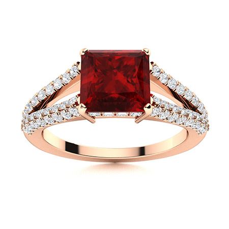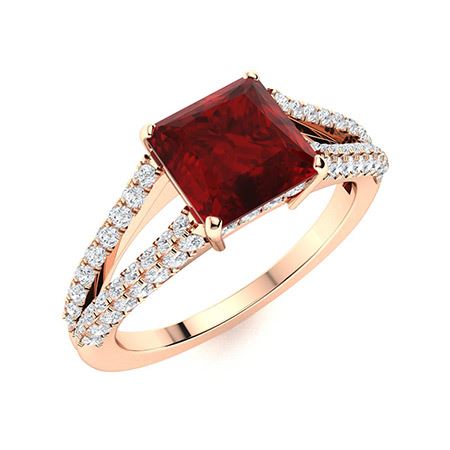 Natural 1.60 CTW Garnet & Diamond Engagement Ring 18K Rose Gold