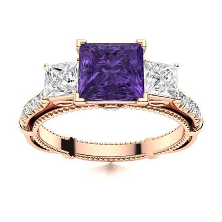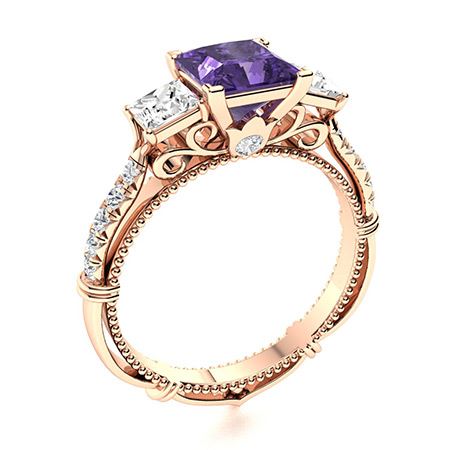 Natural 1.61 CTW Amethyst & Diamond Engagement Ring 14K Rose Gold