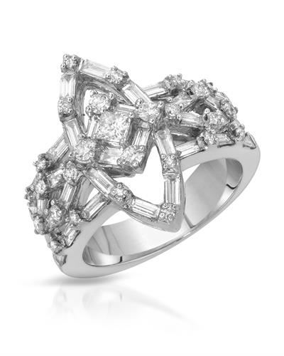 REF-256T5X ---- Natural 1.61 CTW Baguette & Diamond Ring 18K White Gold