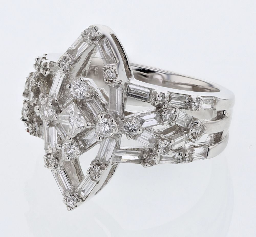 REF-282M6F ---- Natural 1.61 CTW Baguette & Diamond Ring 18K White Gold