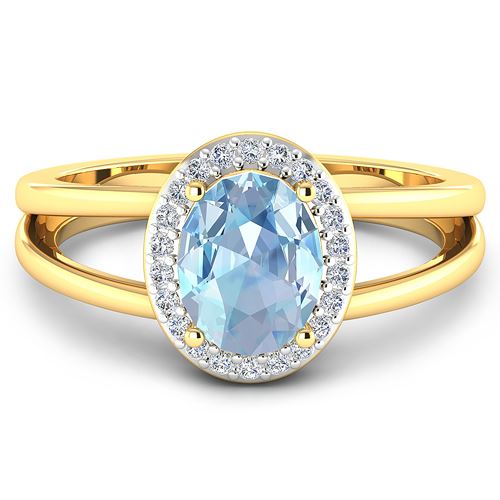 REF-66M9T - Natural 1.62 CTW Aquamarine & Diamond Ring 14K Yellow Gold - REF-66M9T