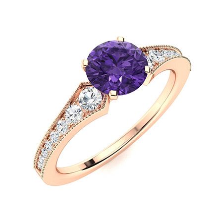 Natural 1.66 CTW Amethyst & Diamond Engagement Ring 18K Rose Gold