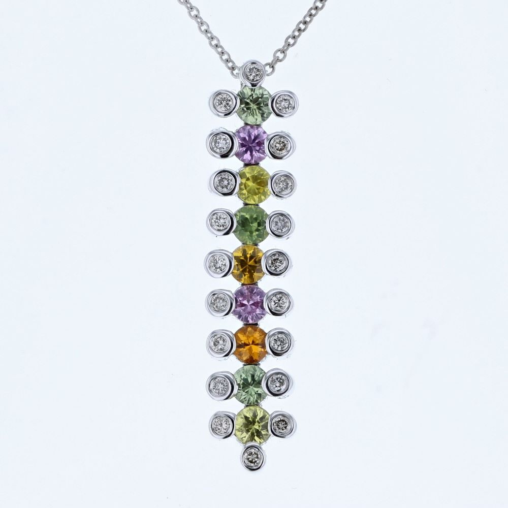 REF-64N8Y ---- Natural 1.69 CTW Multi-Sapphire & Diamond Necklace 14K Gold