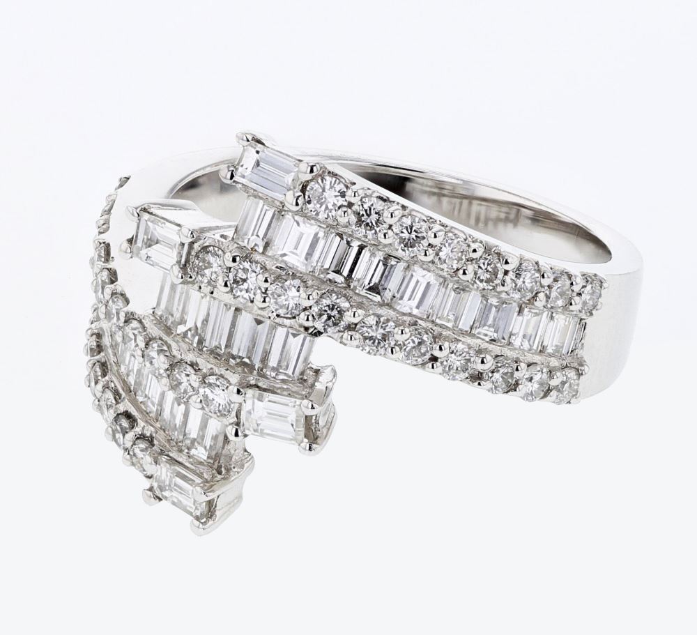 REF-216N2Y ---- Natural 1.70 CTW Baguette & Diamond Ring 18K White Gold