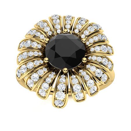 Natural 1.71 CTW Onyx & Diamond Engagement Ring 18K Yellow Gold
