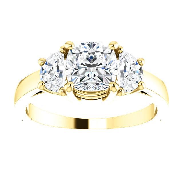 Natural 1.72 CTW 3-Stone Cushion Cut & Half moons Diamond Ring 14KT Yellow Gold
