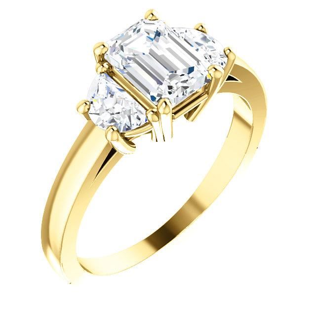Natural 1.72 CTW 3-Stone Emerald Cut & Half Moons Diamond Ring 14KT Yellow Gold