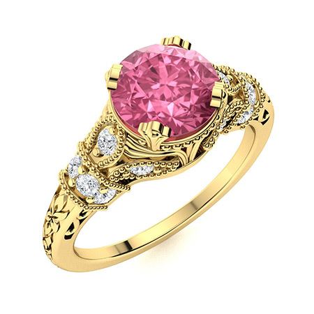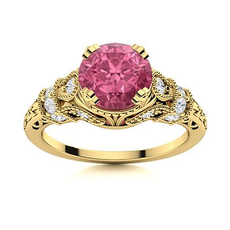 Natural 1.75 CTW Tourmaline & Diamond Engagement Ring 14K Yellow Gold