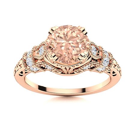 Natural 1.76 CTW Morganite & Diamond Engagement Ring 18K Rose Gold
