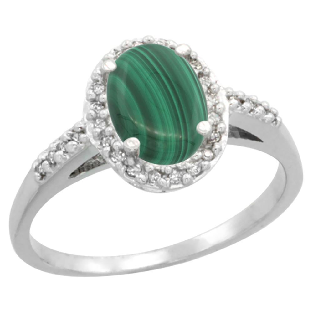 REF-24K6R ---- Manufacturer's Suggested Retail Price - $800.00 ---- Natural 1.77 ctw Malachite & Diamond Engagement Ring 10K White Gold