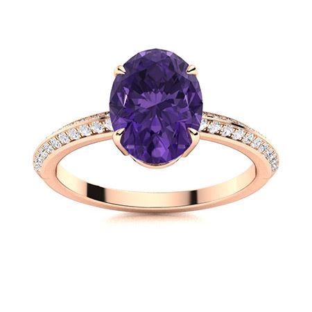 Natural 1.79 CTW Amethyst & Diamond Engagement Ring 14K Rose Gold