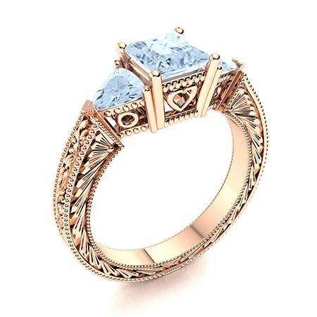 Natural 1.79 CTW Aquamarine Solitaire Ring 18K Rose Gold
