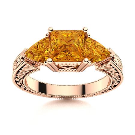 Natural 1.79 CTW Citrine Solitaire Ring 18K Rose Gold
