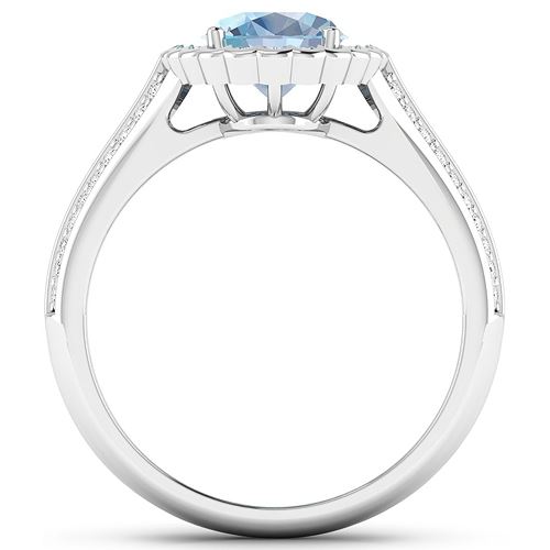 REF-70X9K - Natural 1.82 CTW Aquamarine & Diamond Ring 14K White Gold - REF-70X9K