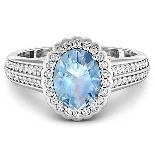 Aquamarine Oval/9x7mm - 1/1.40 ctw Natural Heat Treated E + White Diamond Round/1.20mm - 30/0.24 ctw Prong Setting Natural Not Treated N