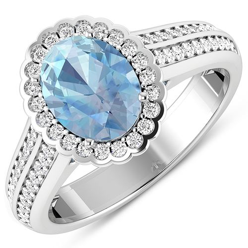REF-70X9K - Natural 1.82 CTW Aquamarine & Diamond Ring 14K White Gold - REF-70X9K