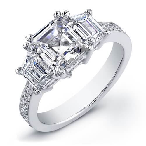 Natural 1.82 CTW Asscher Cut & Trapezoids Diamond Ring 14KT White Gold