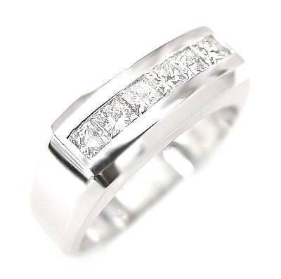 Natural 1.82 CTW Men's Princess Cut Channel Set Diamond Ring 14KT White Gold