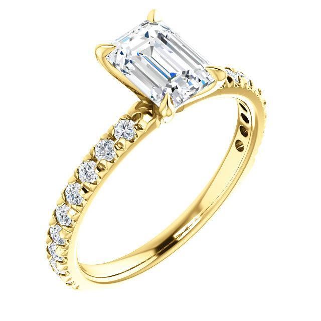 Natural 1.82 CTW Pave Emerald Cut Diamond Engagement Ring 18KT Yellow Gold