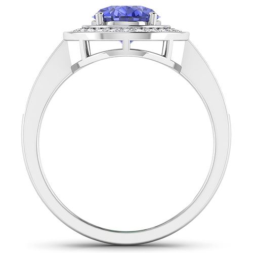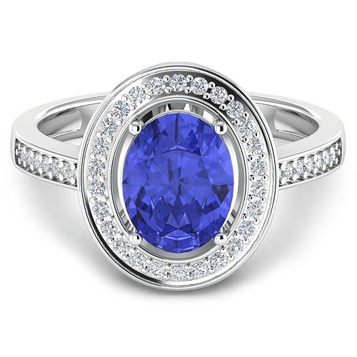 Tanzanite Oval/9x7mm - 1/1.60 ctw Natural Heat Treated E + White Diamond Round/1.10mm - 26/0.17 ctw Prong Setting Natural Not Treated N