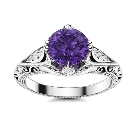 Natural 1.83 CTW Amethyst & Diamond Engagement Ring 14K White Gold