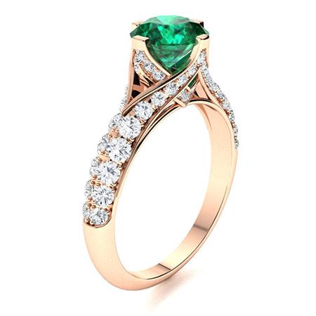 Natural 1.83 CTW Emerald & Diamond Engagement Ring 14K Rose Gold