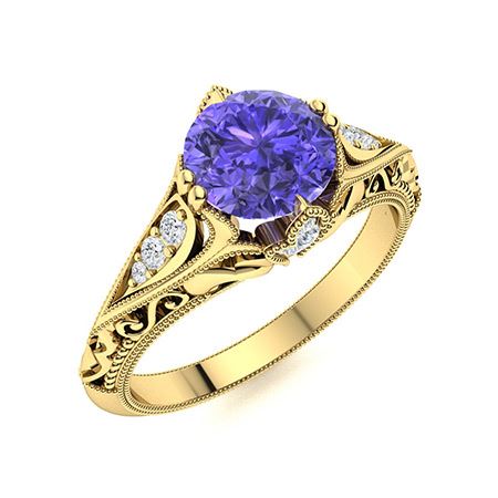 Natural 1.83 CTW Tanzanite & Diamond Engagement Ring 14K Yellow Gold