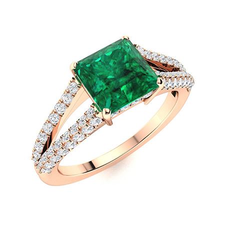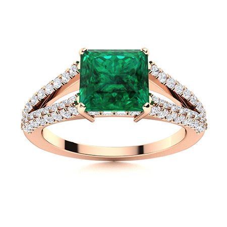 Natural 1.84 CTW Emerald & Diamond Engagement Ring 14K Rose Gold