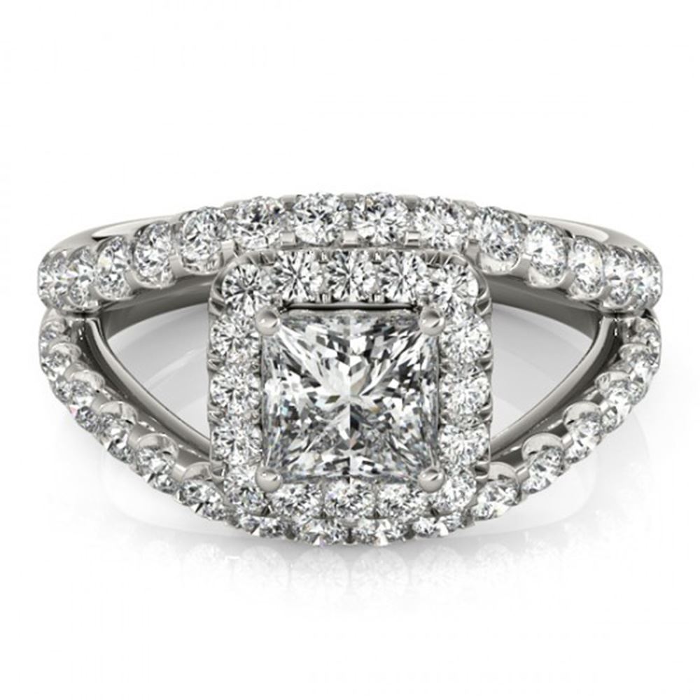 Natural 1.85 ctw Princess Diamond Halo Ring 14k White Gold