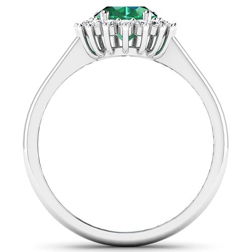 REF-77X3K - Natural 1.87 CTW Zambian Emerald & Diamond Ring 14K White Gold - REF-77X3K
