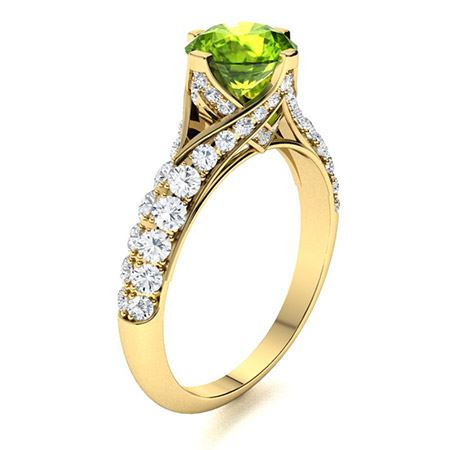 Natural 1.88 CTW Peridot & Diamond Engagement Ring 18K Yellow Gold