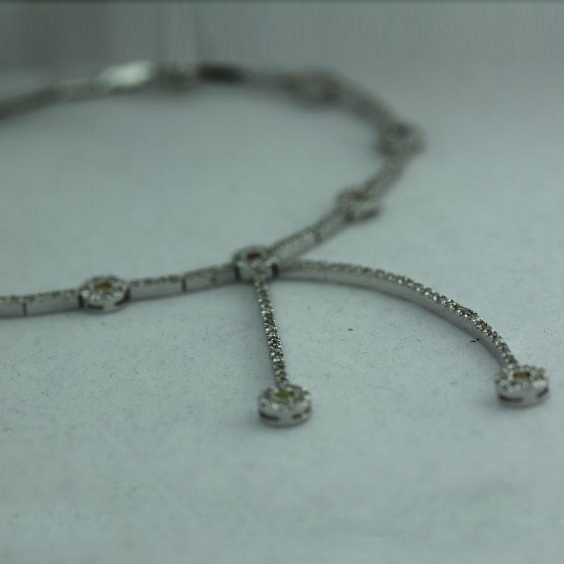 Item details: DIAMOND: 208 Round cut White Diamond @ 1.39ct ---GEMSTONE: 11 Multi-color Sapphire @ 0.52ct---METAL: 14K White Gold---Metal weight 13.57 grams---SKU: 284538N-2 --- Consignor: RC Fine Jewelers --- Availability: Ready to Ship