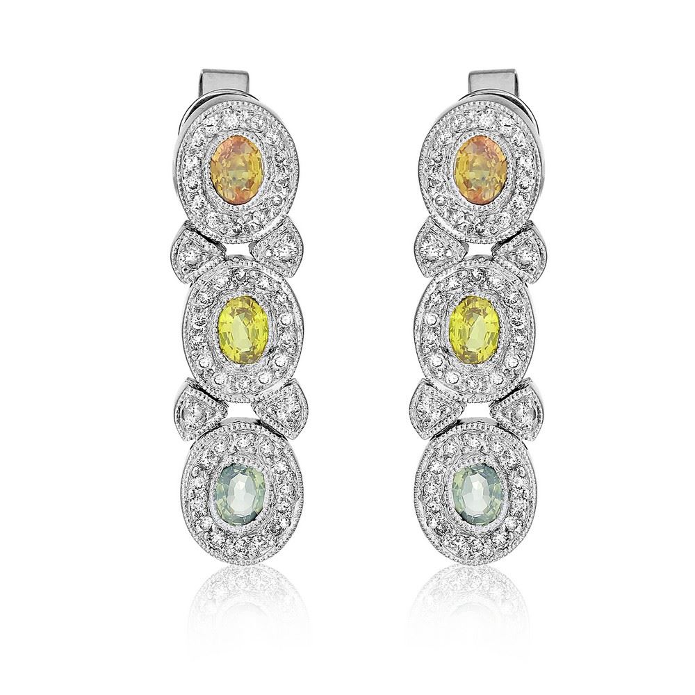 REF-83F7M ---- Natural 1.93 CTW Multi-Sapphire & Diamond Earrings 14K White Gold