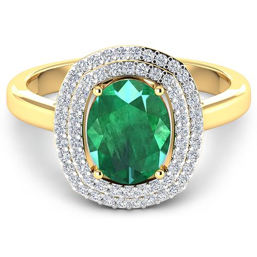 REF-80R9F - Natural 1.93 CTW Zambian Emerald & Diamond Ring 14K Yellow Gold - REF-80R9F