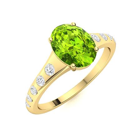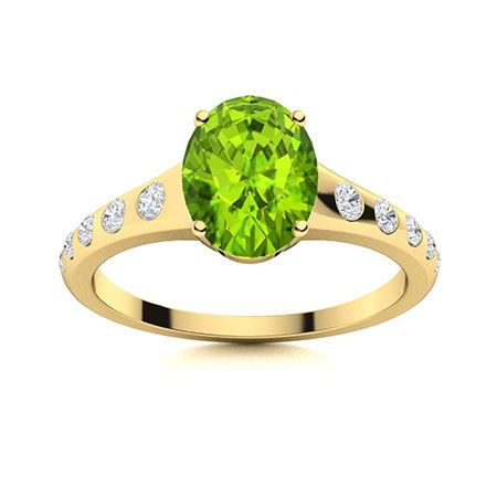 Natural 1.94 CTW Peridot & Diamond Engagement Ring 18K Yellow Gold