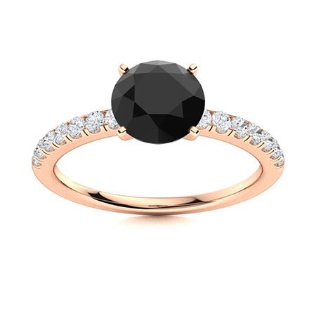Natural 1.97 CTW Onyx & Diamond Engagement Ring 18K Rose Gold