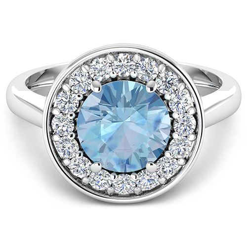 Aquamarine Round/8.00mm - 1/1.50 ctw Natural Heat Treated E + White Diamond Round/2.00mm - 16/0.48 ctw Prong Setting Natural Not Treated N