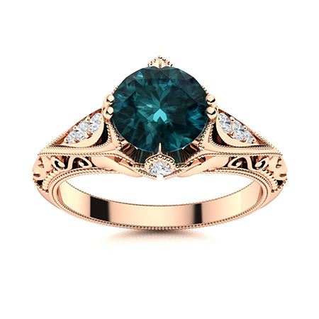 Natural 1.99 CTW Blue & White Diamond Engagement Ring 18K Rose Gold