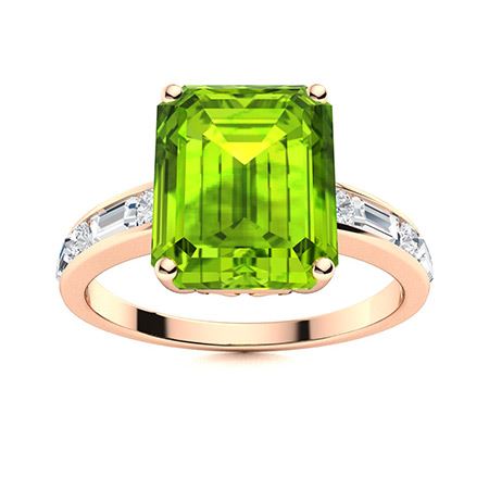 Natural 10.72 CTW Peridot & Diamond Engagement Ring 14K Rose Gold