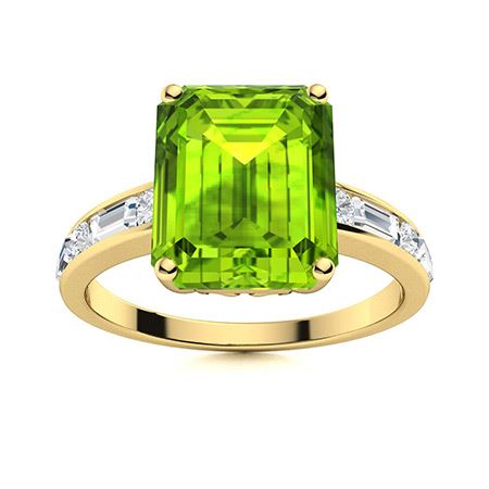 Natural 10.73 CTW Peridot & Diamond Engagement Ring 18K Yellow Gold