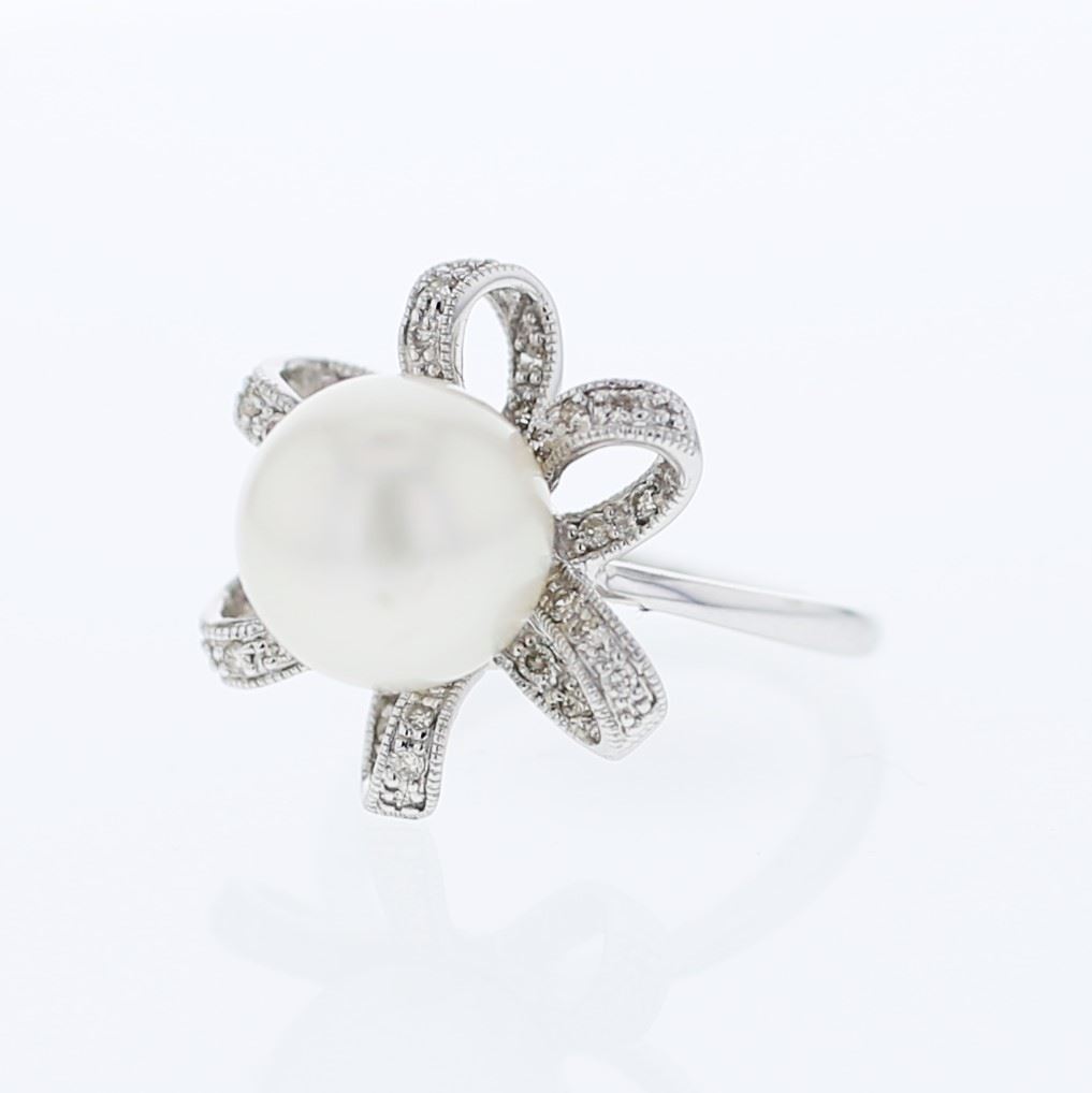 REF-98W3H ---- Natural 10.82 CTW Pearl & Diamond Ring W=16MM 18K Gold