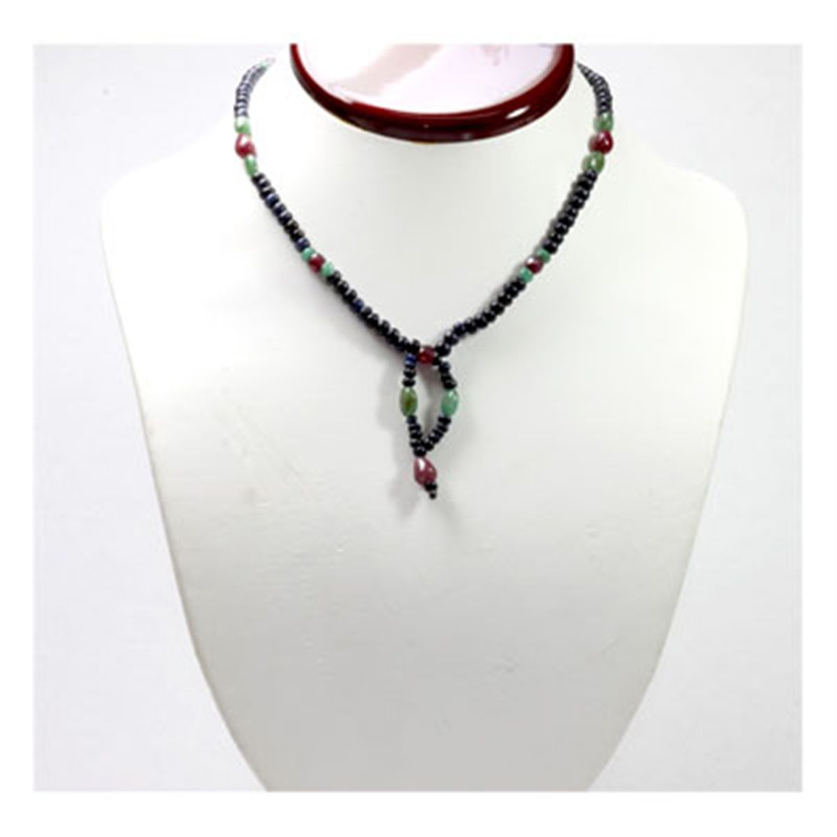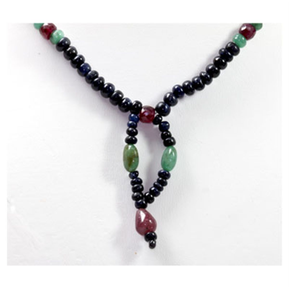 Natural 101.22 ctw Emerald, Ruby & Sapphire Bead Necklace ; MSRP: $934