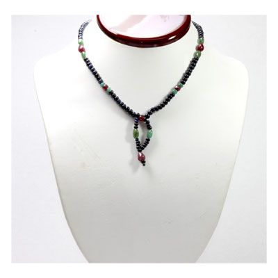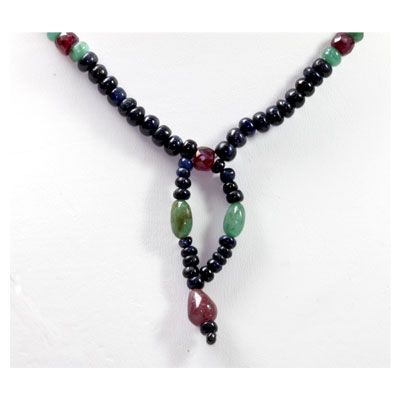 Natural 101.22 ctw Emerald, Ruby Sapphire Bead Necklace **|**|** Natural 101.22 ctw Emerald, Ruby & Sapphire Bead Necklace ; MSRP: $934