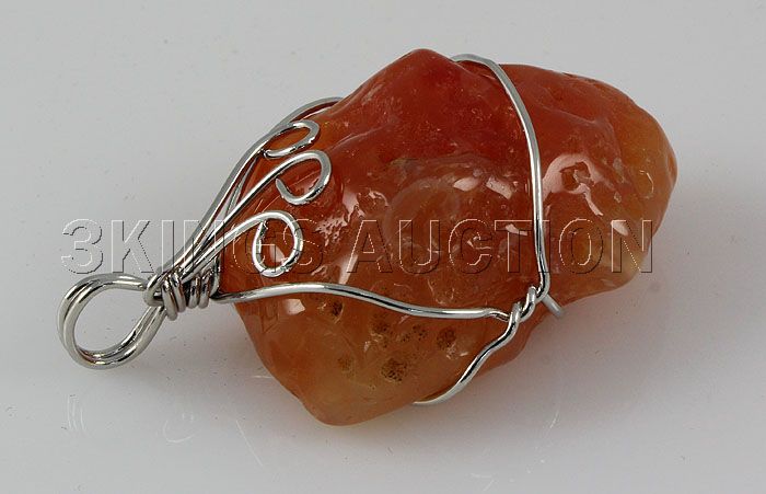 Natural 101.75ctw Uncut Carnelian Silver Pendant **|**|** Tumbled Rough Carnelian Stone Wrapped with Sterling Silver Wire size: 36.56x24.22x15.89mm; color: Orange; stone: Uncut Gemstone ; MSRP: $300