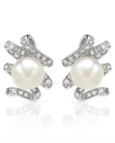 REF-149F4M ---- Natural 11.24 CTW Pearl & Diamond Earrings 18K White Gold